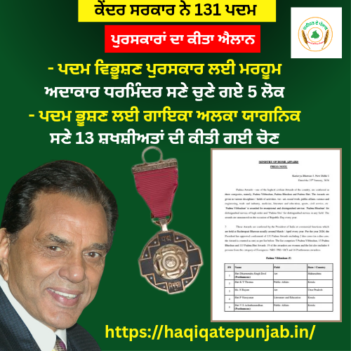📰 ਕੇਂਦਰ ਸਰਕਾਰ ਨੇ 131 ਪਦਮ ਪੁਰਸਕਾਰਾਂ ਦੀ ਸੂਚੀ ਕੀਤੀ ਜਾਰੀ, ਵੱਖ-ਵੱਖ ਖੇਤਰਾਂ ਦੀਆਂ ਹਸਤੀਆਂ ਨੂੰ ਮਿਲੇਗਾ ਰਾਸ਼ਟਰੀ ਮਾਣ।