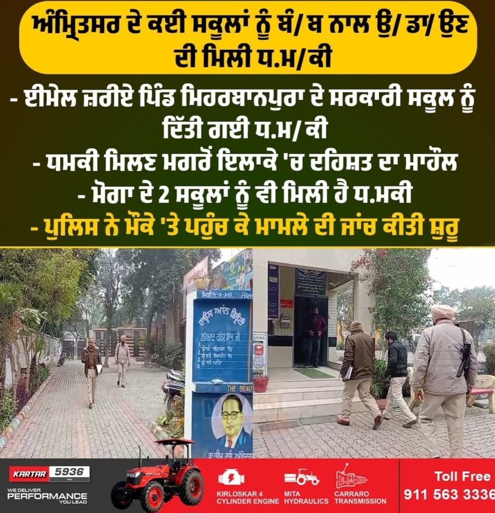 💣 ਅੰਮ੍ਰਿਤਸਰ ਵਿੱਚ ਸਕੂਲਾ ਨੂੰ ਬੰਬ ਧਮਕੀ ਨਾਲ ਹੜਕੰਪ : ਪ੍ਰਸ਼ਾਸਨ ਚੋਕੰਨਾ, ਮਾਪਿਆਂ ਵਿੱਚ ਚਿੰਤਾ ਦਾ ਮਾਹੌਲ ।