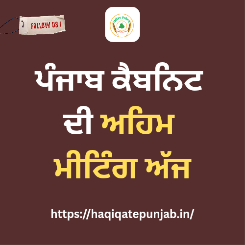 ਪੰਜਾਬ ਸਰਕਾਰ ਦੀ ਕੈਬਨਿਟ ਦੀ ਇਕ ਅਹਿਮ ਮੀਟਿੰਗ ਅੱਜ 9 ਜਨਵਰੀ ਨੂੰ ਚੰਡੀਗੜ੍ਹ ਵਿੱਚ ਹੋਣ ਜਾ ਰਹੀ ਹੈ। ਇਸ ਮੀਟਿੰਗ ਦੀ ਅਗਵਾਈ ਪੰਜਾਬ ਦੇ ਮੁੱਖ ਮੰਤਰੀ ਭਗਵੰਤ ਸਿੰਘ ਮਾਨ ਵੱਲੋਂ ਕੀਤੀ ਜਾਵੇਗੀ।
