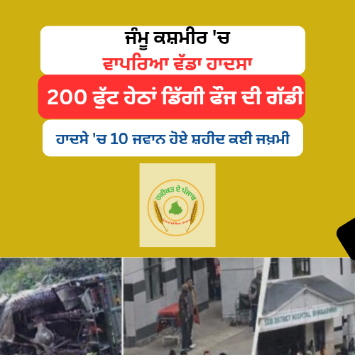 ਜੰਮੂ -ਕਸ਼ਮੀਰ ਤੋਂ ਸਾਹਮਣੇ ਆਈ ਵਿੱਚ ਦਰਦ ਨਾ ਕੱਟਣਾ ਨਹੀਂ ਪੂਰੇ ਦੇਸ਼ ਨੂੰ ਝੰਝੋੜ ਕੇ ਰੱਖ ਦਿੱਤਾ ਹੈ। ਭਾਰਤੀ ਫੌਜ ਦੀ ਇੱਕ ਗੱਡੀ ਡਿਊਟੀ ਦੌਰਾਨ ਭਿਆਨਕ ਹਾਦਸੇ ਦਾ ਸ਼ਿਕਾਰ ਹੋ ਗਈ, ਜਿਸ ਵਿੱਚ ਕਈ ਬਹਾਦੁਰ ਫੌਜੀ ਜਵਾਨ ਸ਼ਹੀਦ ਹੋ ਗਏ। ਇਸ ਘਟਨਾ ਨਾਲ ਫੌਜੀ ਹਲਕਿਆਂ ਸਮੇਤ ਆਮ ਲੋਕਾਂ ਵਿੱਚ ਵੀ